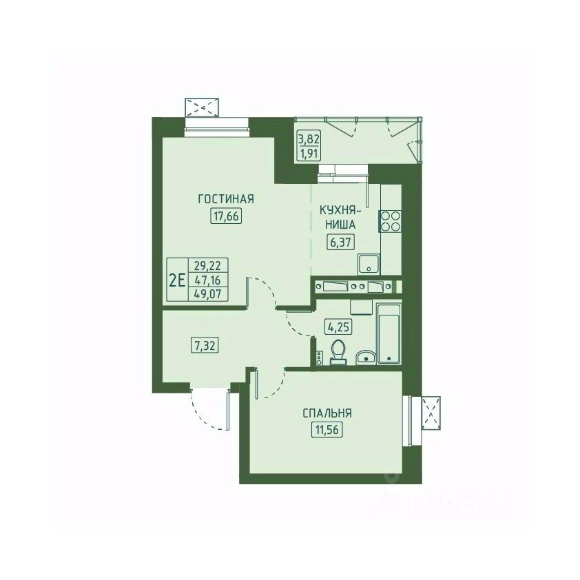 Общая площадь49,07 м²