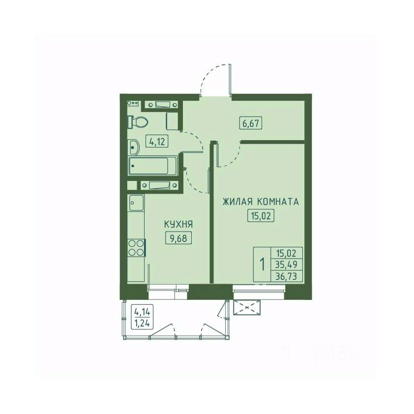 Общая площадь36,73 м²