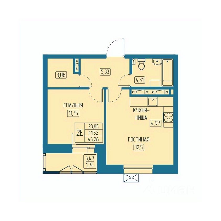 Общая площадь43,26 м²
