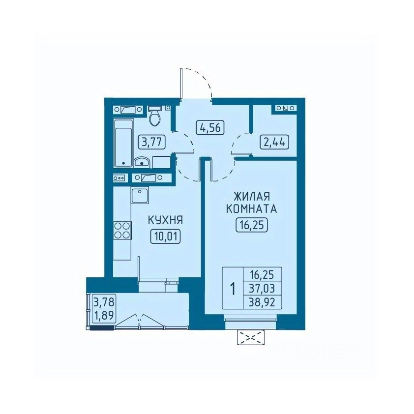 Общая площадь38,92 м²