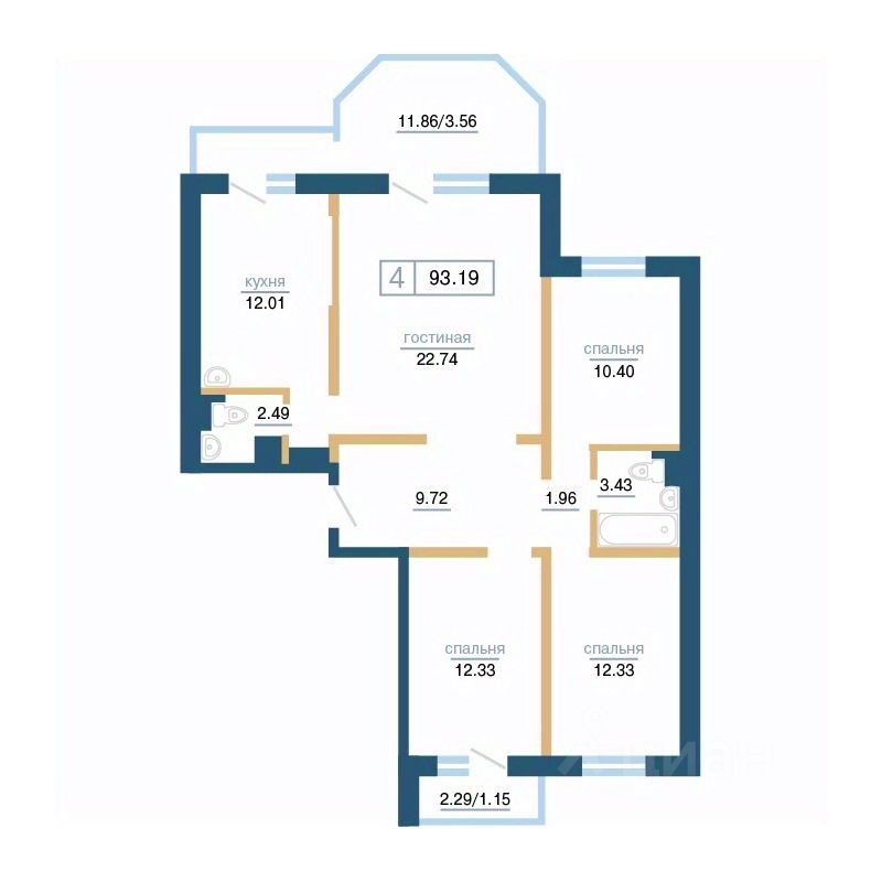 Общая площадь93,19 м²