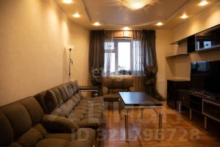 Трехкомнатная квартира с ремонтом в классическом стиле. Комнаты раздельные. Есть большая гардеробная, кладовая, встроенные шкафы, сушилка. Ровные стены оклеены обоями, высокие двухуровневые потолки, на полу паркет. Входные и межкомнатные двери нового образца. Два балкона, выходят на разные стороны дома.