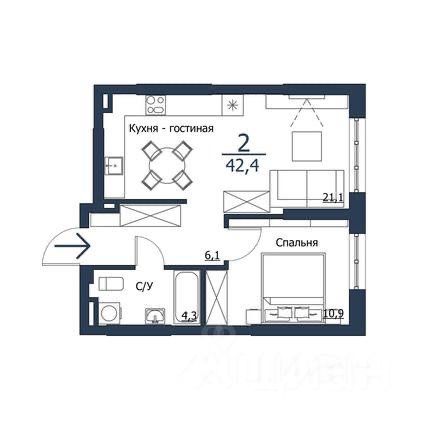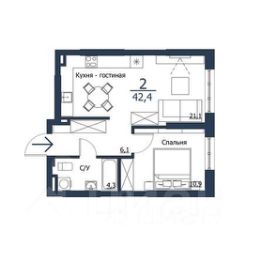 К вашемy вниманию предлагается современная квартира площадью 42,4 м² в ЖК ЧИЖИ с рациональной планировкой, где каждый метр пространства используется максимально функционально. Пространство организовано без лишних коридоров и включает несколько полезных зон: уютную кухню-гостиную площадью 21,1м² с большими окнами, отдельную спальню, практичную лондри-комнату для стиральной машины и систем хранения, гардеробную и полноценный санузел.