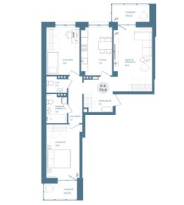 Продаётся 3-комнатная квартира в сданном доме (Дом 1-1), срок сдачи: III-кв. 2025, общей площадью 79.9 кв.м., на 3 этаже.