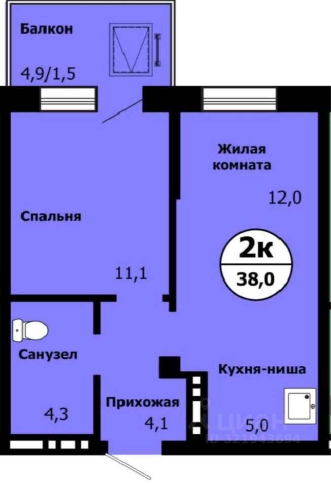 Общая площадь37 м²