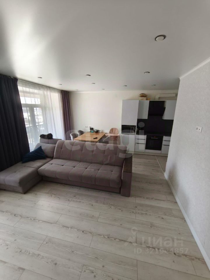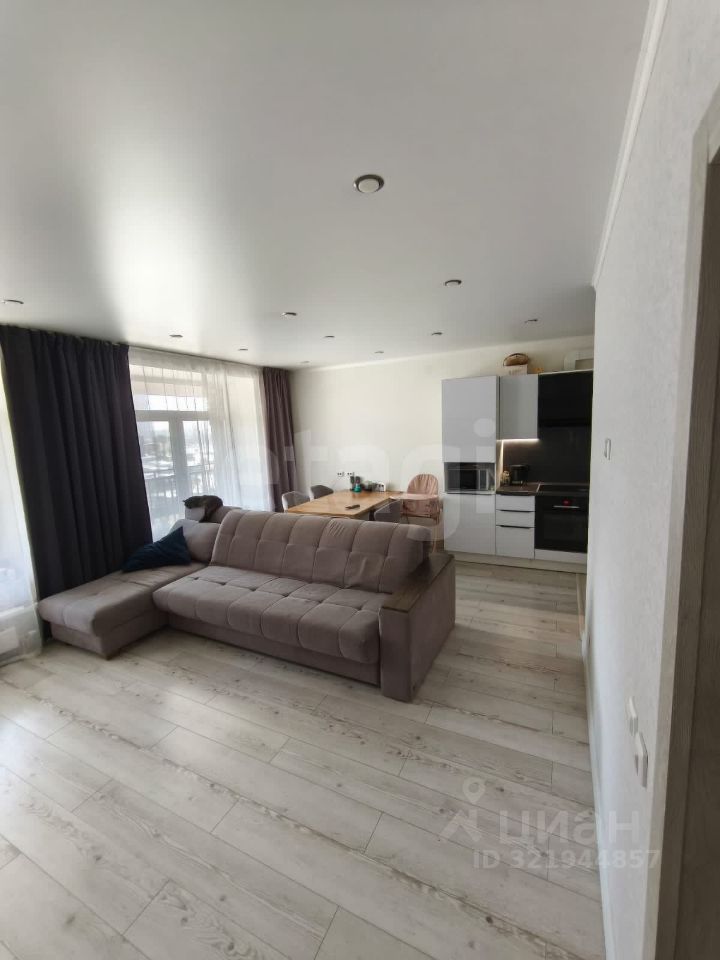 Гостиная совмещена с кухней, что создает хорошее зонирование и ощущение большего пространства.
