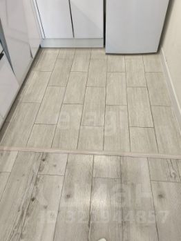 Во всей квартире качественный ламинат одним полотном без стыков, в зоне кухни керамогранит.