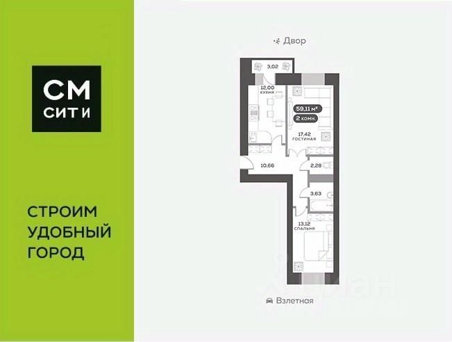 Общая площадь59,11 м²