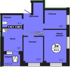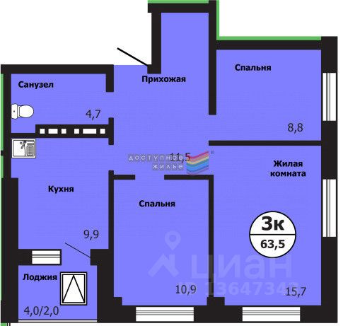 Арт. 117677987 3х комнатная по цене 2х комнатной!
