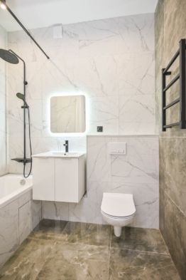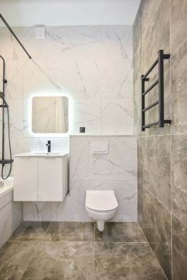 Детали: освещение по всей квартире, встроенные полки в гардеробной и тёплый пол в санузле
