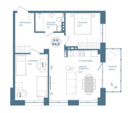Продаётся 3-комнатная квартира в сданном доме (Дом 1-1), срок сдачи: III-кв. 2025, общей площадью 64.8 кв.м., на 19 этаже.