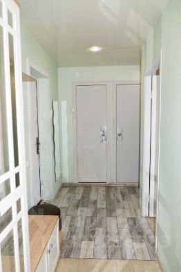 Пол линолеум, в коридоре ламинат с теплым полом. Во всей квартире 2-х уровневые натяжные потолки с глянцевым материалом, что зрительно увеличивает пространство. Большой балкон застеклен и утеплен. Ванная и туалетные комнаты в кафеле, на потолке панели ПВХ. Все окна пластиковые с трехкамерным стеклопакетом.