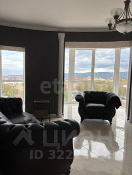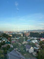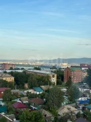 Из гостиной через панорамное остекление осуществляется выход на лоджию, которая служит отличной зоной отдыха с видом на город - он потрясающий.