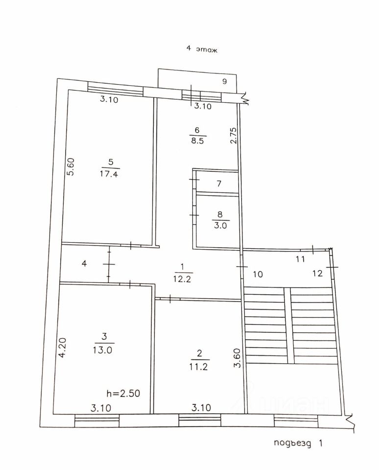Высота потолков 2,5 м., интернет, кабельное ТВ.
