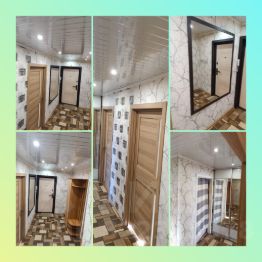 Встроенная гардеробная с зеркальными дверями и подсветкой, в коридоре большое зеркало и подвесной потолок с тремя уровнями света! Качественный износостойкий линолеум фирмы ТАРКЕТ.