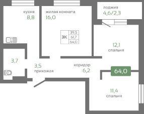 Общая площадь64 м²