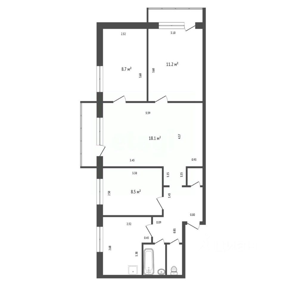 Просторная планировка — 4 комнаты