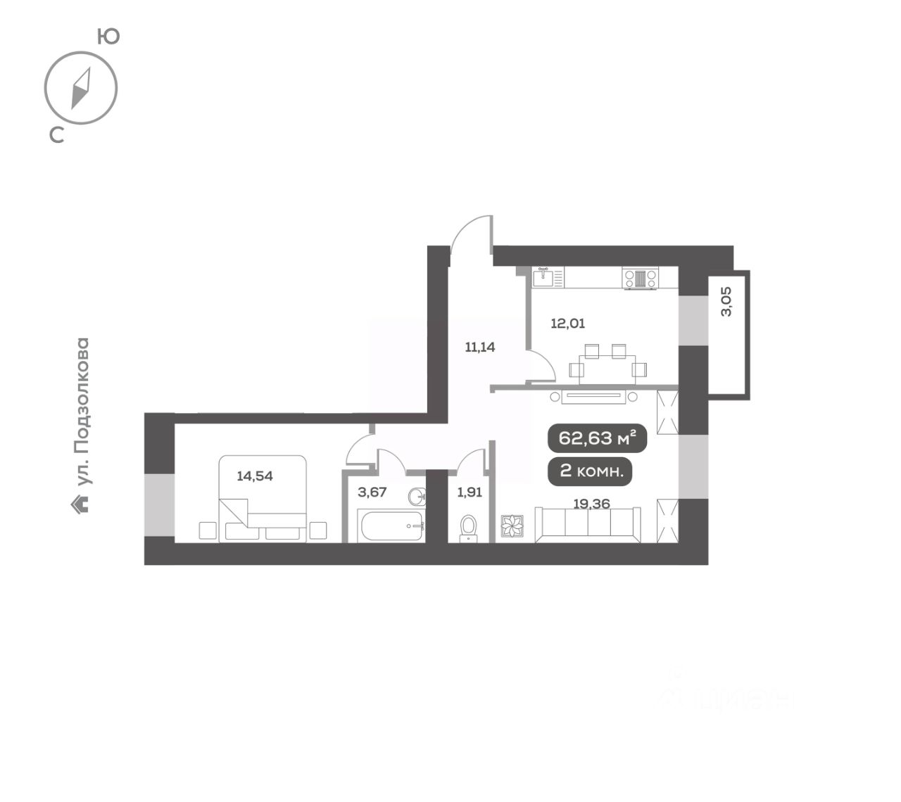 Общая площадь62,63 м²