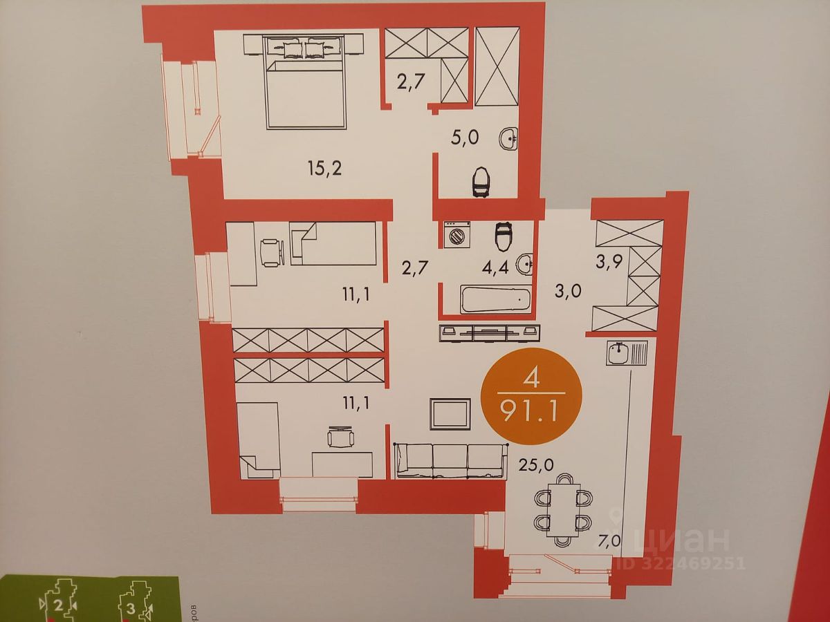 Наша квартира расположена в секции 2, и имеет самое выгодное расположение среди всех секций.