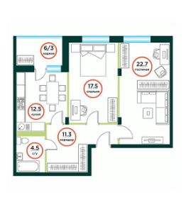 Удобная планировка с максимально полезной площадью.
