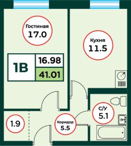 Продаётся 1-комнатная квартира в строящемся доме (ЖК Эко, 3 (Дом 3)), срок сдачи: IV-кв. 2026, общей площадью 41.2 кв.м., на 1 этаже.