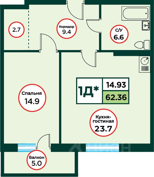 Продаётся 2-комнатная квартира в строящемся доме (ЖК Эко, 3 (Дом 3)), срок сдачи: IV-кв. 2026, общей площадью 62.25 кв.м., на 2 этаже.