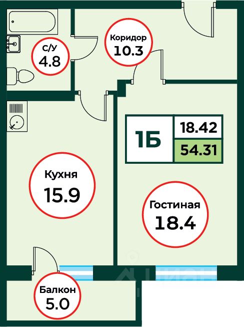 Общая площадь54,31 м²