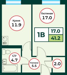 Продаётся 1-комнатная квартира в строящемся доме (ЖК Эко, 3 (Дом 3)), срок сдачи: IV-кв. 2026, общей площадью 41.2 кв.м., на 1 этаже.