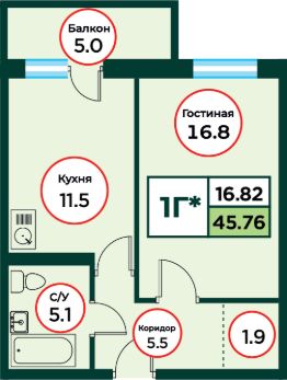 Продаётся 1-комнатная квартира в строящемся доме (ЖК Эко, 3 (Дом 3)), срок сдачи: IV-кв. 2026, общей площадью 45.66 кв.м., на 2 этаже.
