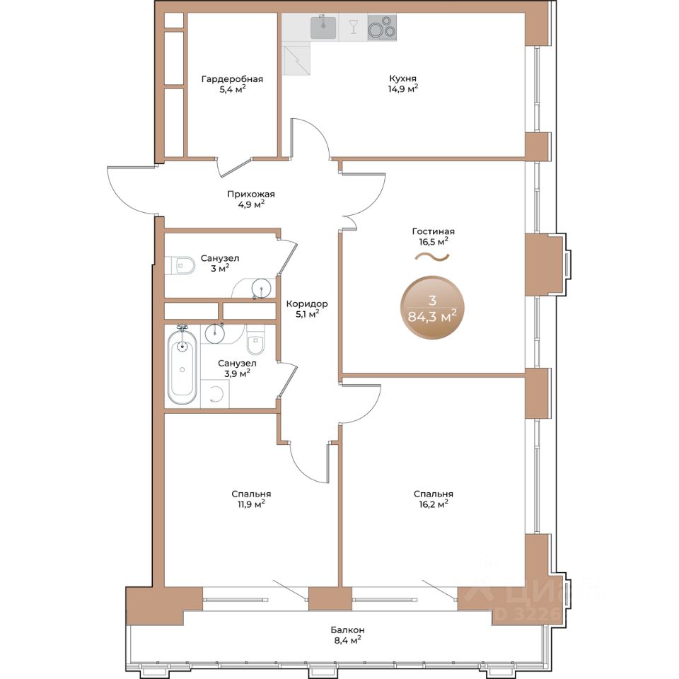 Общая площадь84,3 м²