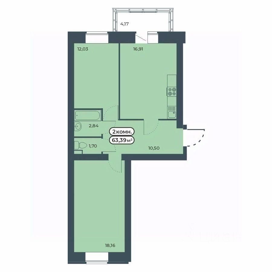 Общая площадь63,39 м²