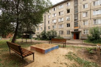 Тихий просторный двор, достаточно места для парковки.