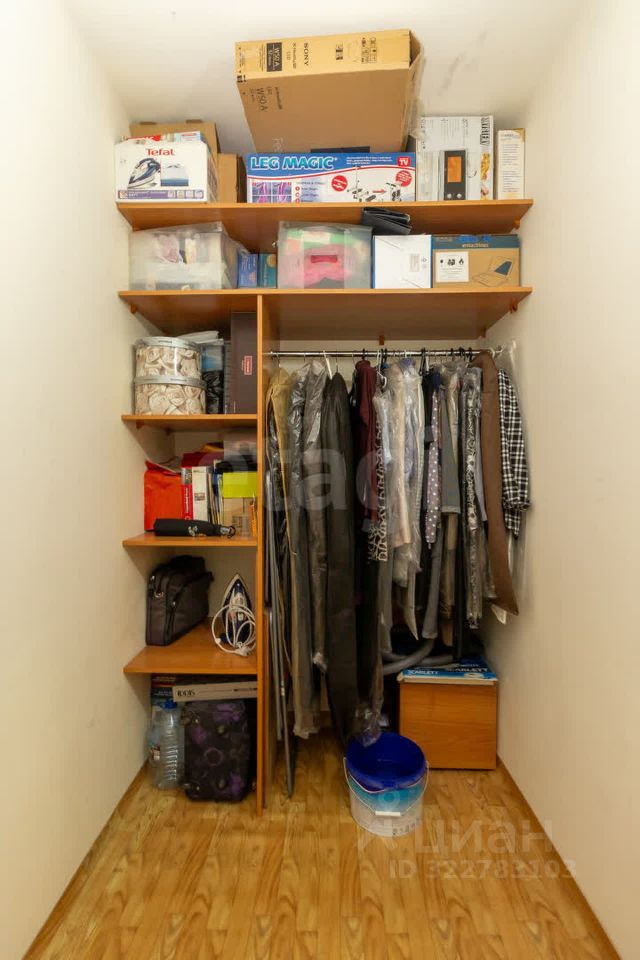 Изолированная гостиная 17,4 квадратных метров, просторная гардеробная для хранения вещей.