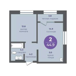 2-комнатная квартира на 19 этаже в 24-этажной секции прогресс-кварталов "Перемены".