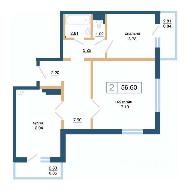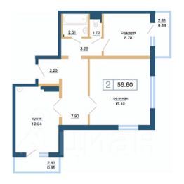 Общая площадь56,6 м²