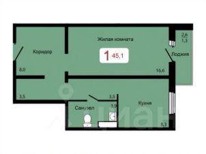 Общая площадь квартиры — 45.1 кв.м. Тип дома — панельный.