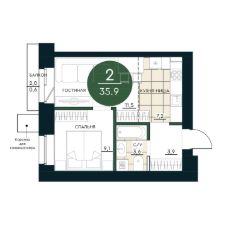 Продаётся 2-комнатная квартира в строящемся доме (Секция 4), срок сдачи: IV-кв. 2026, общей площадью 35.9 кв.м., на 12 этаже. Калина Долина - продолжение нового формата городской жизни - "зеленых районов" от АРБАН. Впервые мы вписываем жилой комплекс в сложный природный ландшафт с перепадом высоты до 10 м и настоящей рекой.