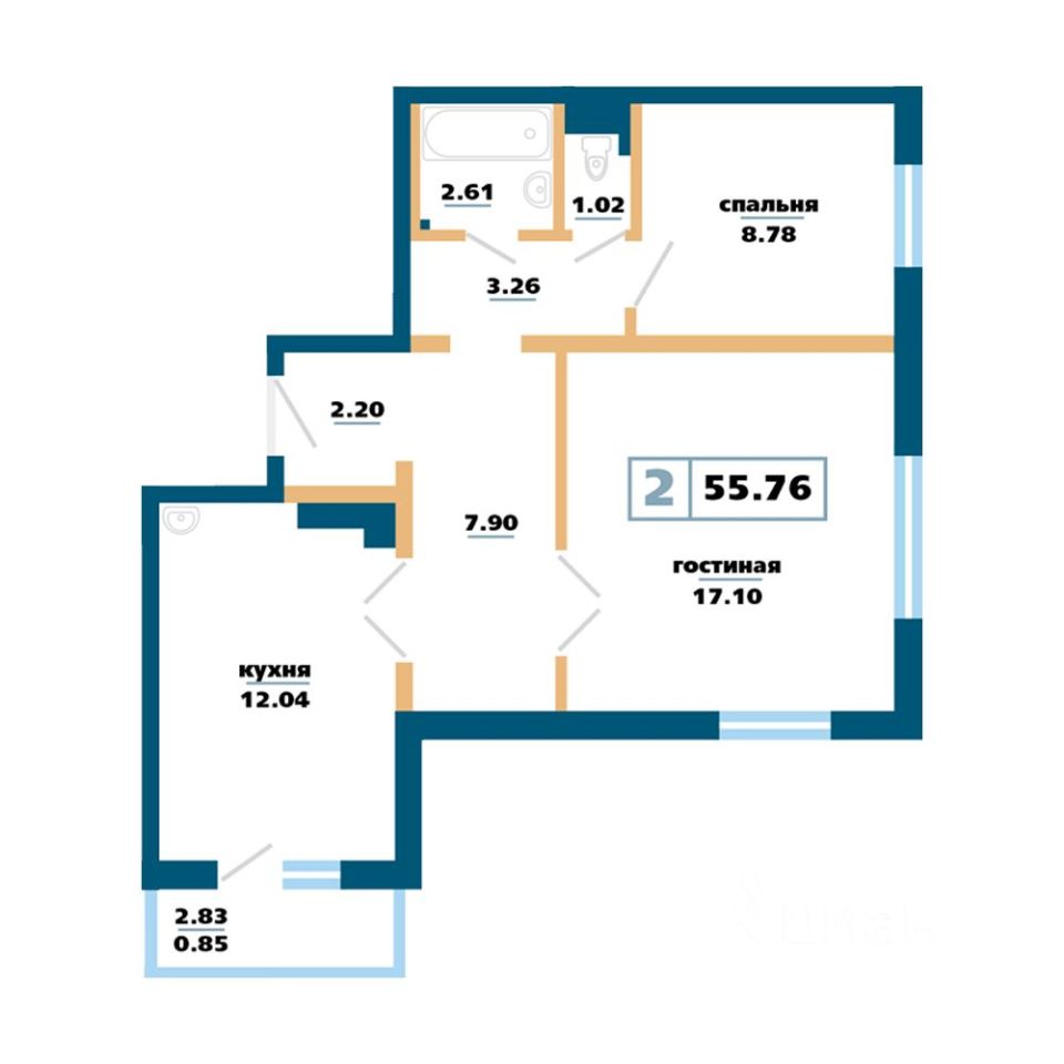 Общая площадь55,76 м²