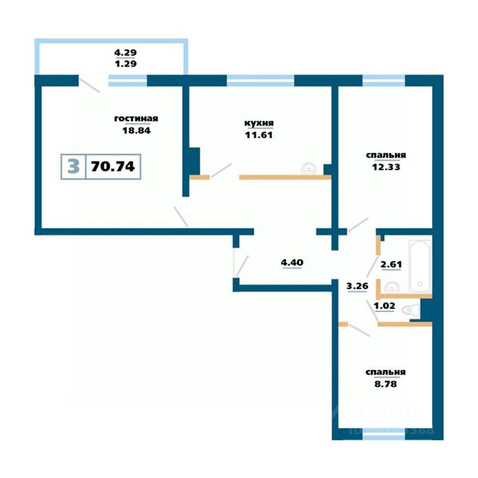 Продаётся 3-комнатная квартира в строящемся доме (Дом 12), срок сдачи: IV-кв. 2027, общей площадью 70.74 кв.м., на 12 этаже. Расположение, транспортная доступность
