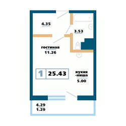 Продаётся 1-комнатная квартира в строящемся доме (Дом 12), срок сдачи: IV-кв. 2027, общей площадью 25.43 кв.м., на 17 этаже. Расположение, транспортная доступность