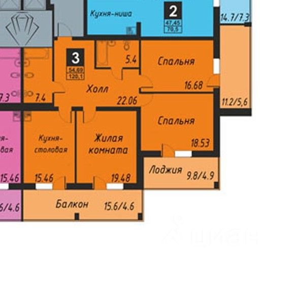 1 лоджия, 2 балкона