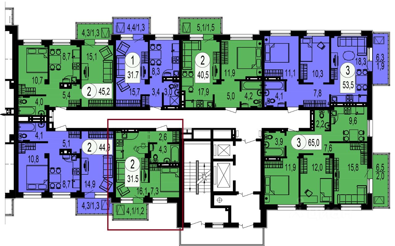 + Повышенная звукоизоляция межквартирных стен (кирпичные стены толщиной 250 мм либо железобетонные межквартирные стены толщиной 200 мм).
