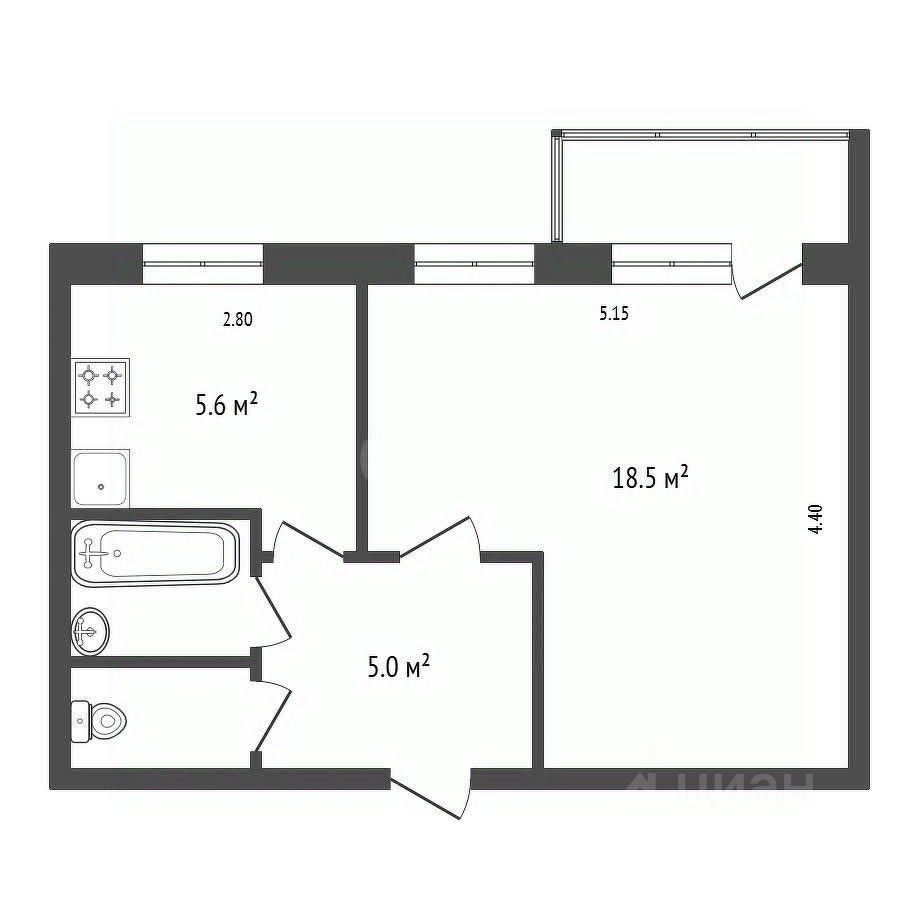 Практичная планировка: 33,1 кв. м. с раздельным санузлом и изолированной кухней (6 кв. м.).