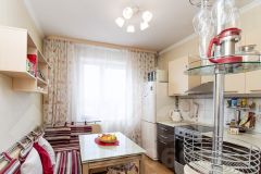 Квартира продается с полностью оборудованной кухней, в которую входят стильный кухонный гарнитур со встроенной стиральной машиной, плита с духовкой и вытяжка. Также предусмотрен водонагреватель на 50 литров, встроенный шкаф и гардеробная, что позволит вам организовать пространство максимально удобно и функционально.