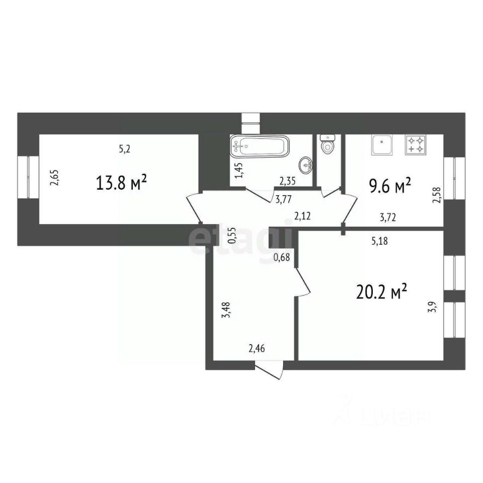 55,6 м²