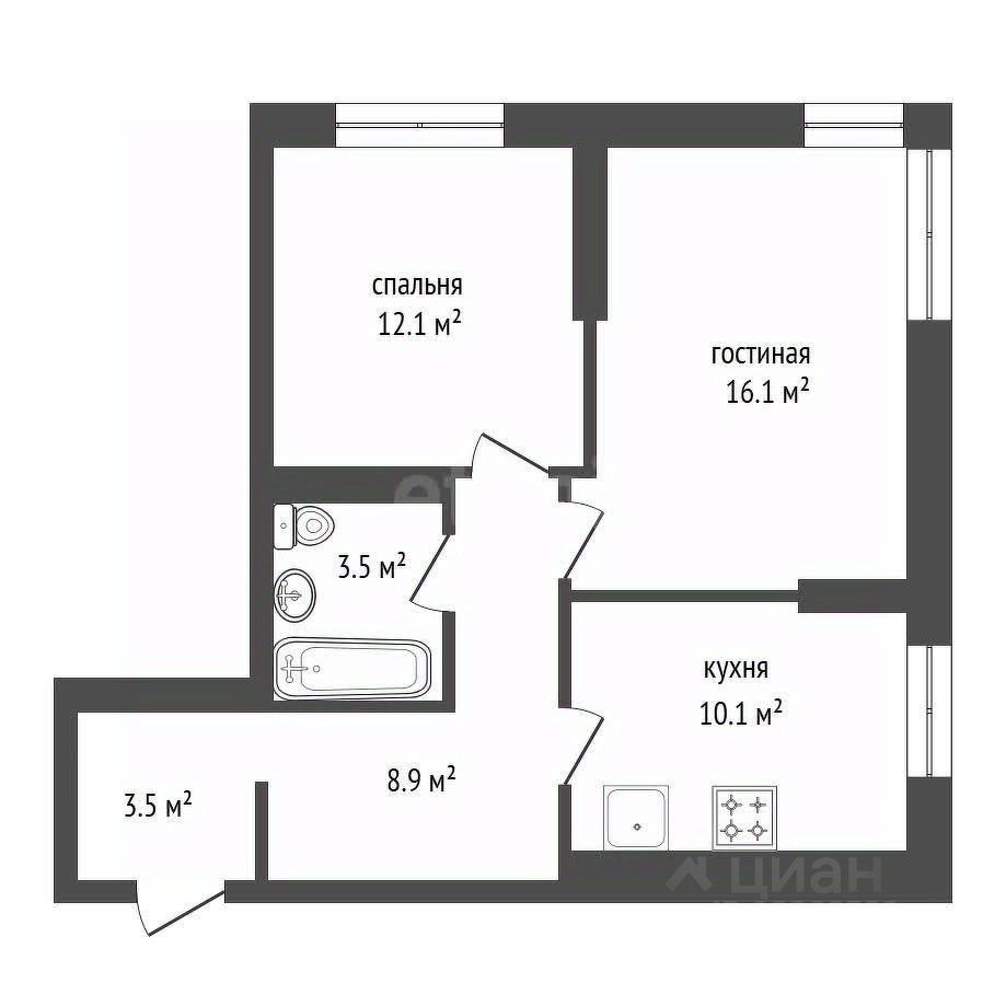* Планировка: Все комнаты правильной формы. Контур квартиры стремится к квадрату, что обеспечивает рациональное использование пространства.