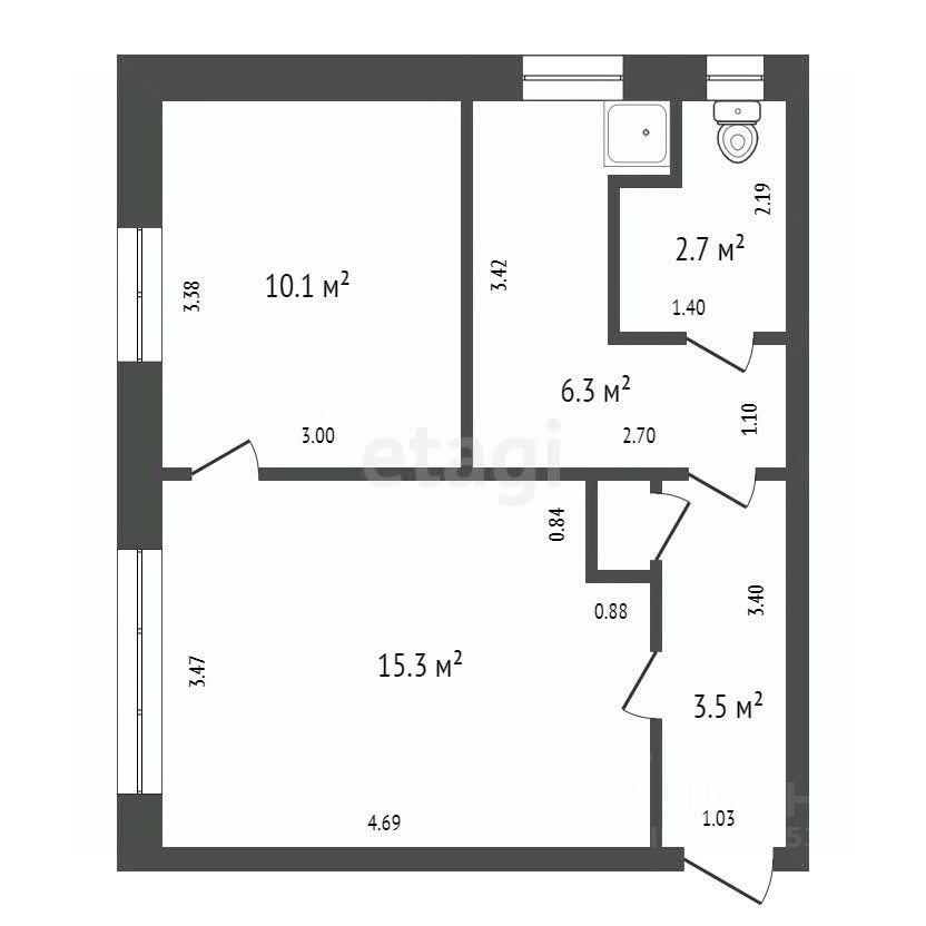 Окна выходят во двор, потолки 2,5 метра.
