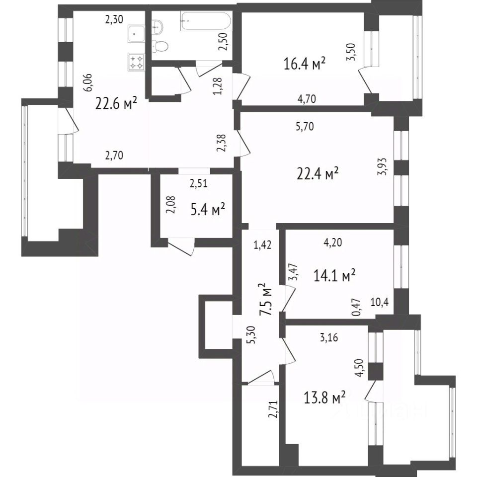 2 санузла в кафеле до потолка, 2 балкона, кладовая, рабочее место. На этаже всего две квартиры (для которых выделен отдельный вход к мусоропроводу и своя кладовая на площадке).