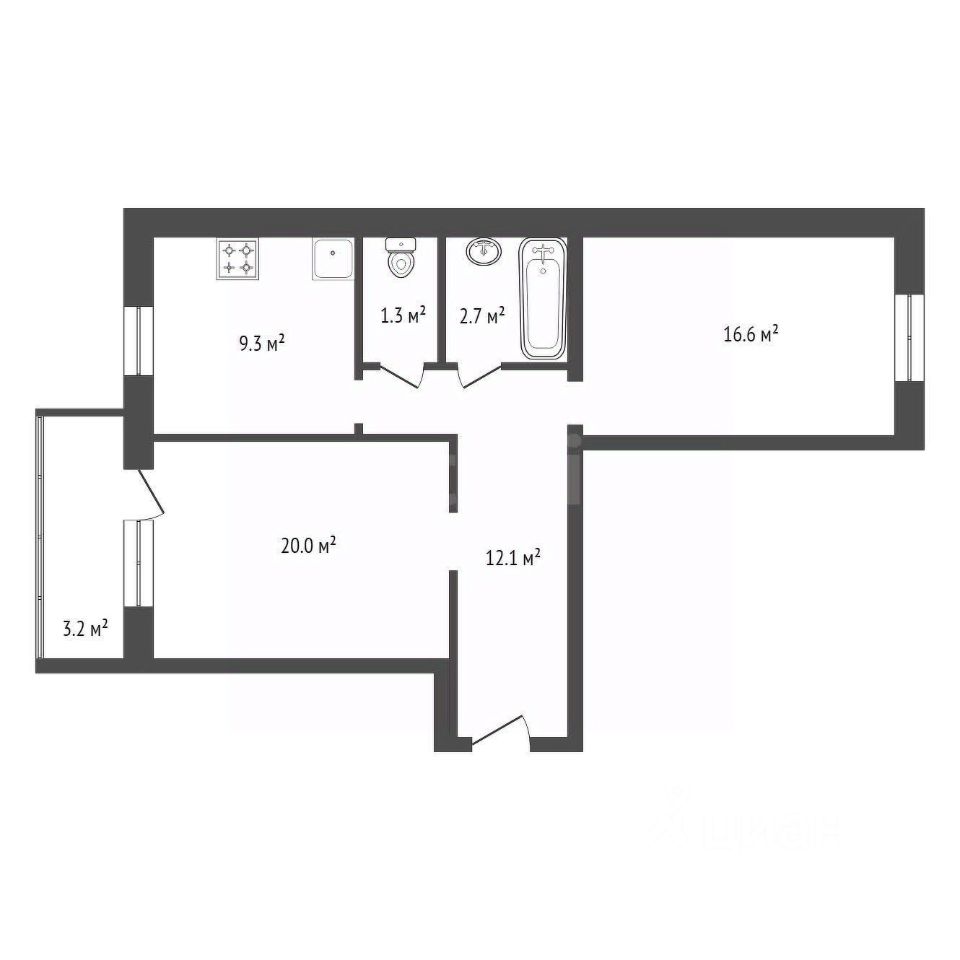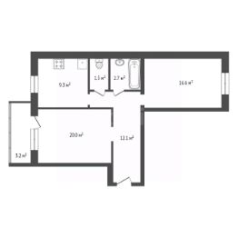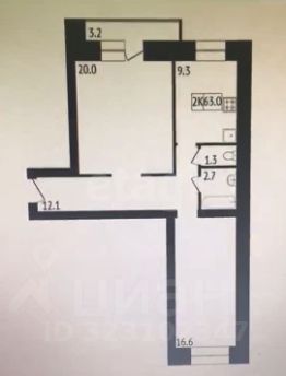 Двухкомнатная квартира площадью 63 кв. м расположена на 7 этаже монолитно-кирпичного дома в жилом комплексе "Снигери" (микрорайон Солнечный).
