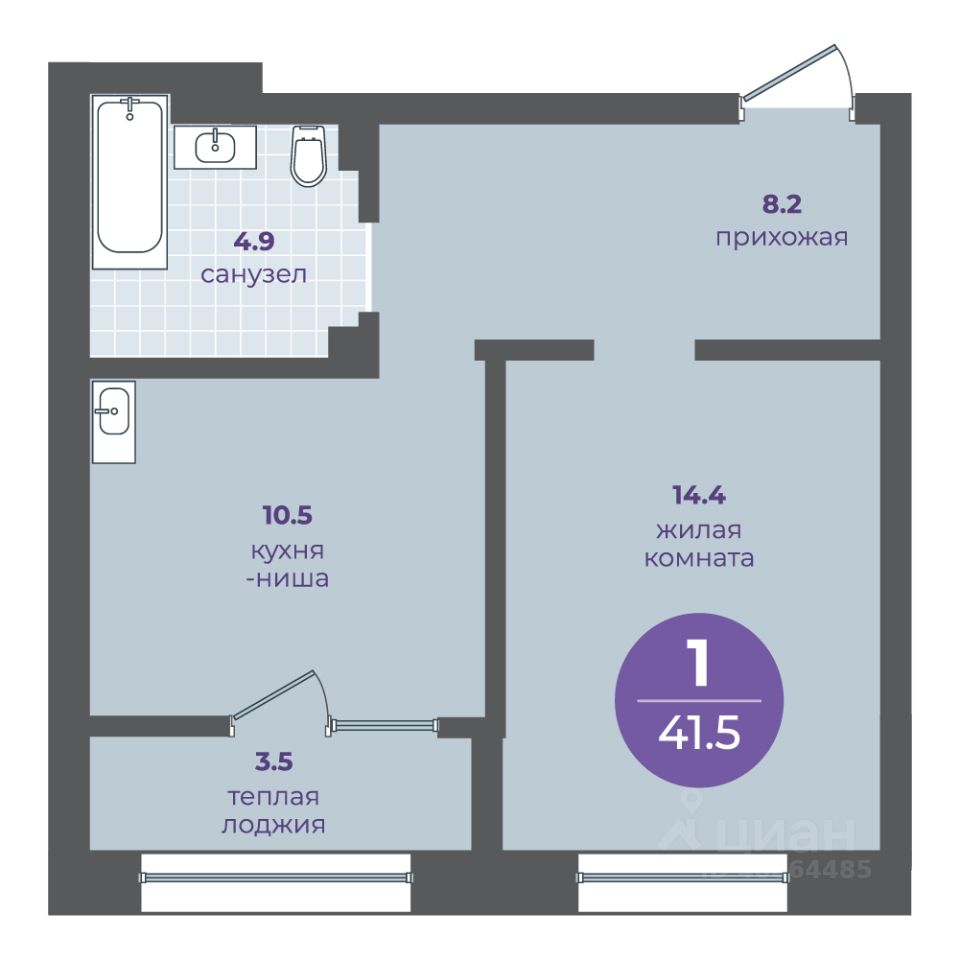 1-комнатная квартира на 2 этаже в 15-этажной секции прогресс-кварталов "Перемены".